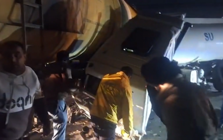 Bakıda yük maşını qatara çırpıldı, sürücü öldü - Video