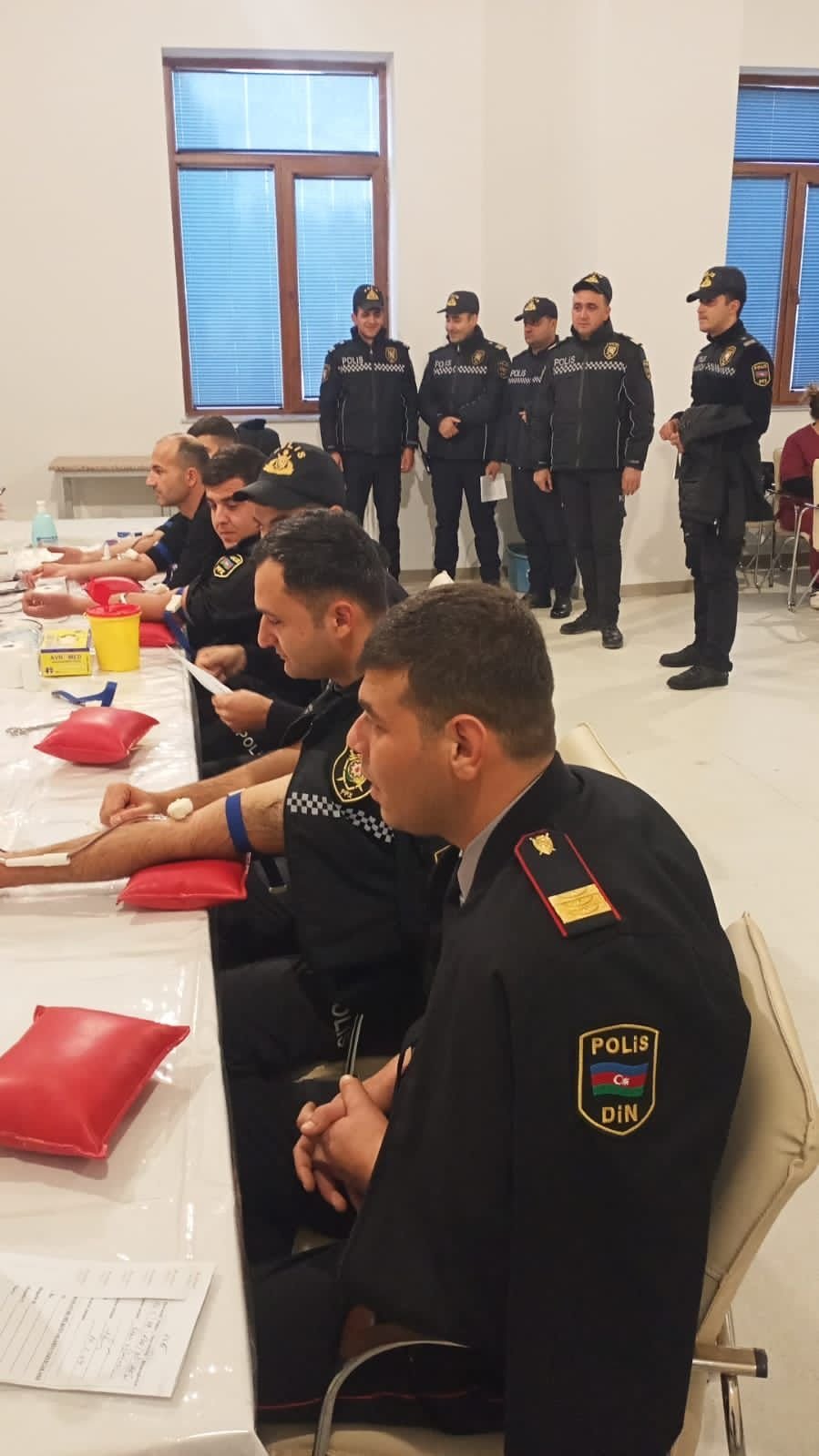 Polis əməkdaşları əvvəlcə tibbi müayinədən keçiblər, daha sonra isə qan vermək üçün masalara yaxınlaşıblar. Onlar bu aksiyada iştirak etməyi özlərinə vətəndaşlıq borcu, xəstə soydaşlarımızla həmrəylik nümunəsi olduğunu bildiriblər.