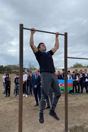 Daha sonra yarışlara start verilib və gənclər yarışların proqramında müəyyən olunan marşrut üzrə 1000 metr məsafəyə kross qaçışı və gimnastika hərəkətləri ilə çıxış ediblər.