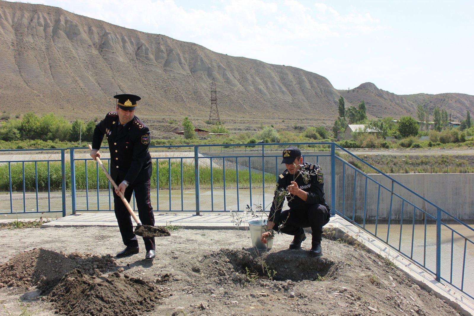Sonda isə Heydər Əliyevin anadan olmasının 100-cü ildönümü münasibətilə rayon polis şöbəsinin əməkdaşları ağacəkmə aksiyasında iştirak ediblər. Göyçay şəhəri ərazisində iqlim şəraitinə uyğun 200 zeytun ağacı əkilərək suvarılıb, onlara