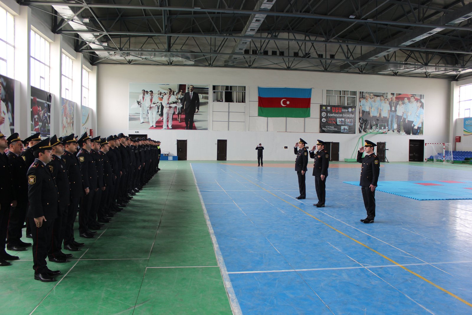 Əvvəlcə şöbə əməkdaşları arasında silahsız özünümüdafiə və əlbəyaxa döyüş növləri üzrə yarışa start verilib. Göyçay Olimpiya İdman Kompleksində keçirilən yarışın açılış mərasimində Ümumilli Lider Heydər Əliyevin və Azərbaycanın suverenliyi və ərazi bütövlüyü uğrunda canlarını fəda etmiş şəhidlərimizin əziz xatirəsi bir dəqiqəlik sükutla yad edilib. Daha sonra Dövlət Himni səsləndirilib.
