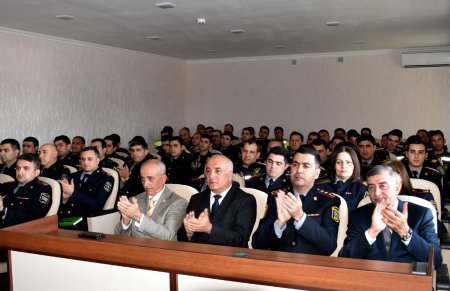 Tədbirdə çıxış edən şöbə rəisi, polis polkovniki Fizuli Əhmədov ömrünü Azərbaycan Respublikasının müstəqilliyinə həsr edən Ümumilli Lider H.Əliyevin şərəfli həyat yolundan danışıb. O, bildirib ki, ölkəmizin dar günündə millətimizin harayına səs verən H.Əliyev bütün çətinliklərə sinə gərərək, dövlətimizin dirçəlməsinə nail oldu. Bunun nəticəsində qısa bir zaman ərzində artıq Azərbaycan ən öndə gedən ölkələr arasında öz yerini tutaraq, beynəlxalq layihələrin əksəriyyətində fəal iştirak etdi.