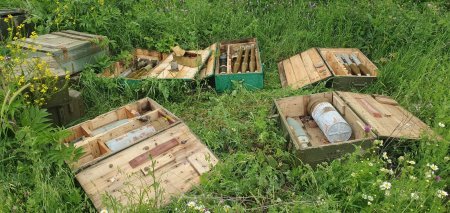 Xocavənd Rayon Polis Şöbəsinin əməkdaşları tərəfindən tərk edilmiş mövqelərdən erməni hərbi qüvvələrinə məxsus partlayıci vasitələr aşkar edilib.DİN-in Mətbuat Xidmətinin Bərdə regional qrupundan verilən məlumata görə, polis əməkdaşları rayonun Tuğ kəndindəki meşə massivində 52 ədəd müxtəlif növ mərmi və 14000 ədəd avtomat patronu aşkar edərək Minatəmizləmə Agentliyinə təhvil verib.