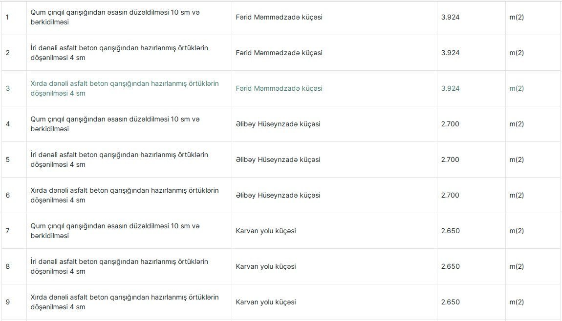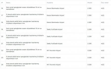 Tenderin qalibi adıçəkilən şirkət elan olunur və tərəflər arasında 615 min 063 manat məbləğində satınalma müqaviləsi imzalanır. Şərtlərə əsasən, şirkət Ağdam rayonundakı məcburi köçkün qəsəbələrində qəsəbədaxili asfalt yolların təmiri işlərini bu ilin iyulun 19-na qədər başa çatdırmalıdır.