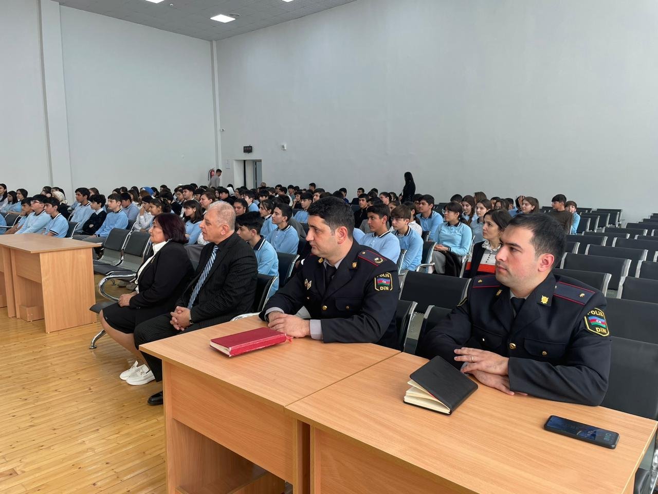 Görüşdə şəhər İcra Hakimiyyətinin və hüquq mühafizə orqanlarının rəhbərləri, məktəbin pedaqoji kollektivi və yuxarı sinif şagirdləri iştirak ediblər. Tədbirin əvvəlində Azərbaycan Respublikasının Dövlət Himni səsləndirilib.Daha sonra çıxış edən Şəhər Polis Şöbəsinin rəisi, polis polkovniki Fizuli Əhmədov narkotik vasitələrin cəmiyyət üçün yaratdığı problemlərdən danışıb. Bildirib ki, gənclərin fiziki və mənəvi sağlamlığı üçün ciddi təhlükə törədən narkomaniyanın qarşısının alınması istiqamətində hüquq mühafizə orqanları tərəfindən ciddi mübarizə aparılır, zərərli maddələrin qurbanına çevrilən insanların normal həyata qayıda bilməsi istiqamətində zəruri bütün tədbirlər həyata keçirilir.