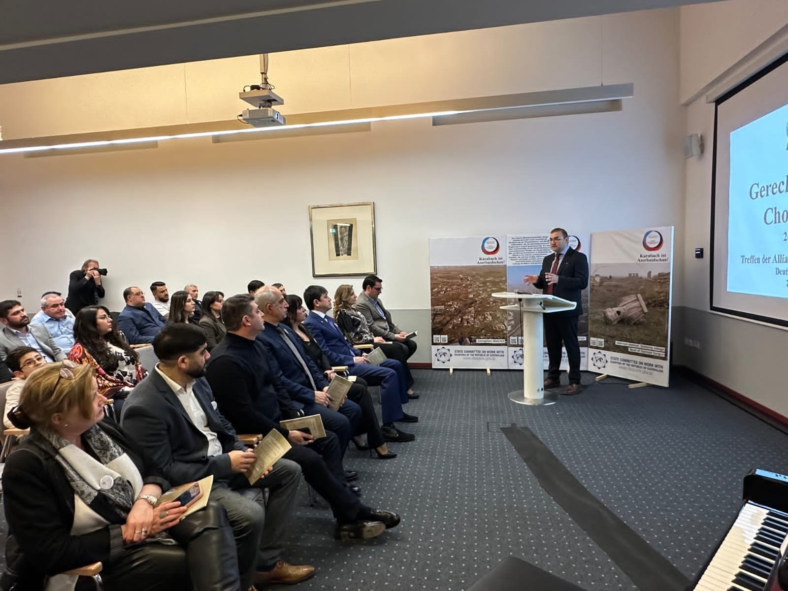 Tədbirdə çıxış edən Diasporla İş üzrə Dövlət Komitəsinin sədri Fuad Muradov tədbir iştirakçılarına Ali Baş Komandan İlham Əliyevin suverenliyimizi tam bərpa etdikdən sonrakı dövrdə diaspor siyasətindəki prioritetləri tədbir iştirakçılarının diqqətinə çatdırıb. Komitə sədri hər il olduğu kimi, bu il də diaspor təşkilatları tərəfindən “Xocalıya Ədalət” beynəlxalq təbliğat və təşviqat kampaniyası çərçivəsində çoxsaylı tədbirlərin həyata keçirildiyini, dünya ictimaiyyətinin məlumatlandırıldığını bildirib. Bir neçə gün öncə Köln Katedralı önündə 200-dən çox diaspor nümayəndəsinin iştirakı ilə baş tutmuş aksiyanı xatırladan Komitə sədri Almaniyada yaşayan soydaşlarımızın Azərbaycanın haqq səsinin dünya ictimaiyyətinə çatdırılmasında həmişə xüsusi fəallıq göstərdiyini vurğulayıb.