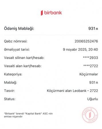 Ailə üzvləri bu barədə Fəqan İsmayılova məlumat verdikdən sonra o, mağazada çalışan Fərid adlı şəxslə telefon danışığı aparıb. Həmin şəxs “narahatçılıq yoxdur, qəbz sabah göndəriləcək” deyərək onu inandırıb və kart nömrəsi təqdim edib. Nəticədə 931 manat məbləğində pul köçürülüb.