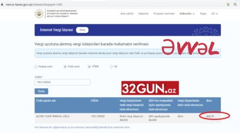 32gun.az-ın bu faktı ictimailəşdirməsindən və məsələni diqqət mərkəzinə gətirməsindən dərhal sonra, filial direktoru addım ataraq fiziki şəxsin vergi ödəyicisi kimi aktiv statusunu passivə çevirib.