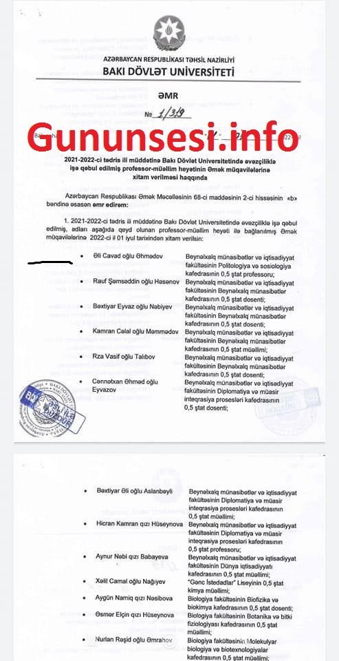 Məsələ ilə bağlı BDU-dan "Qafqazinfo"ya daxil olan məlumatda deyilir:
