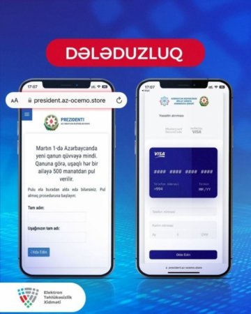 Sosial şəbəkədə yeni dələduzlar peyda olub. Bu dəfə onlar 500 manat "uşaqpulu" veriləcəyi ilə bağlı insanları tora salmağa çalışırlar.BAKU.WS xəbər verir ki, sosial şəbəkədə prezidentin rəsmi internet saytına oxşayan saxta portallar yaradan dələduzlar vətəndaşlara saxta mesajlar göndərirlər.