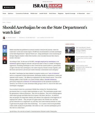 İsrailli ravvin ABŞ-ın Beynəlxalq Dini Azadlıq Komissiyasını Azərbaycanla bağlı qərəzli mövqeyinə görə qınayıb