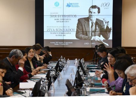 Qazaxıstanın Astana şəhərində yerləşən Lev Qumilyov adına Avrasiya Milli Universitetində görkəmli tarixçi və şərqşünas alim, tanınmış ictimai xadim, Dövlət mükafatı laureatı, Əməkdar elm xadimi, akademik Ziya Bünyadovun anadan olmasının 100 illiyinə həsr olunmuş “Görkəmli elm xadimi Ziya Bünyadov və onun türkologiya elminin inkişafındakı töhfələri” mövzusunda dəyirmi masa keçirilib.Konfransın açılış mərasimində çıxış edən Avrasiya Milli Universitetinin prorektoru Janna Kurmanqaliyeva tədbir iştirakçılarını salamlayıb. O, Avrasiya Milli Universitetinin əsas fəaliyyət istiqamətləri haqqında məlumat verib, universitetin 1996-cı ildə təsis edildiyini diqqətə çatdırıb. J. Kurmanqaliyeva universitetdə bakalav, magistratura və doktorantura pillələri üzrə mütəxəssis hazırlığının həyata keçirildiyini deyib.