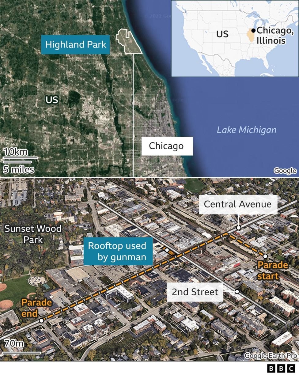 Cənab Crimo axtarışdan sonra saxlanılıb. O, bazar ertəsi atışmada "maraqlanan şəxs" kimi xatırlandı, lakin həbs edildikdən sonra polis onun məsuliyyət daşıdığına inandıqlarını söylədi. Silahlı şəxs Çikaqo şəhəri yaxınlığında, yerli vaxtla 10:15 (GMT 15:15) radələrində parad başlayandan bir neçə dəqiqə sonra atəş açıb. Tədbirdə şəhərin Müstəqillik Günü qeyd etmələri çərçivəsində üzgüçülüklər, marş qrupları və icma əyləncələri nəzərdə tutulmuşdu. Lakin ilin ən xoşbəxt günlərindən biri olması lazım olan şey tez bir zamanda çaxnaşmaya çevrildi, izdiham hadisə yerindən qaçarkən uşaq arabaları, pul kisələri və qazon stulları küçəyə atıldı. Bəzi şahidlər atəş səsinin atəşfəşanlıq olduğunu düşündüklərini deyiblər. Silahlı şəxs yaxınlıqdakı mağazanın damından ictimaiyyət nümayəndələrinə atəş açıb, polis orada "odlu silahın sübutunu" aşkar edib. 5 nəfər böyük hadisə yerində, həmçinin yerli koronerin dediyinə görə, yaxınlıqdakı xəstəxanada ölən digər qurban da həlak olub. Ən azı onlarla insan yaralanıb.