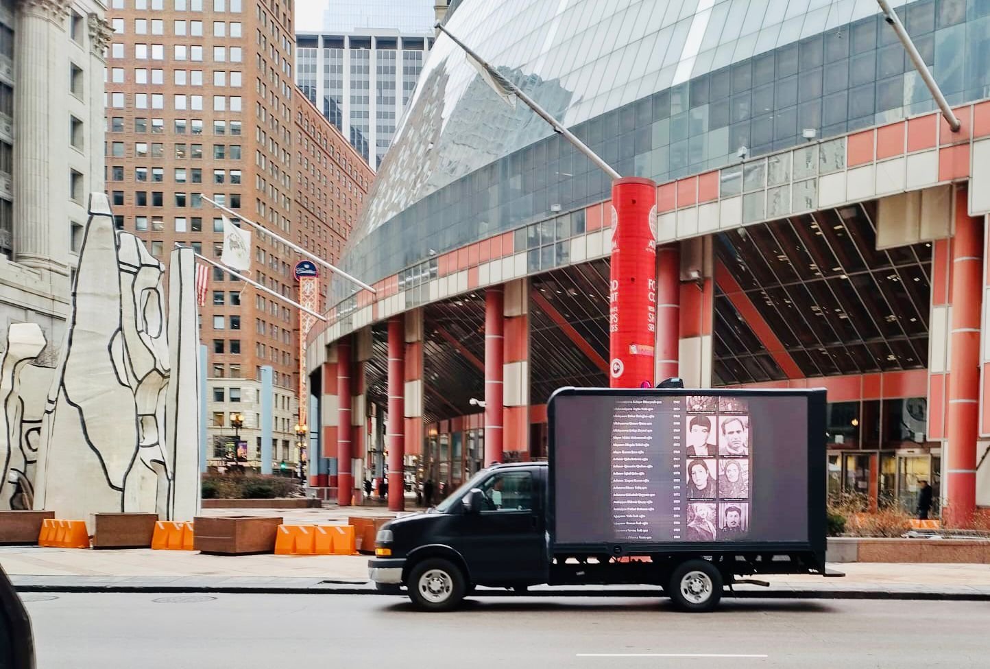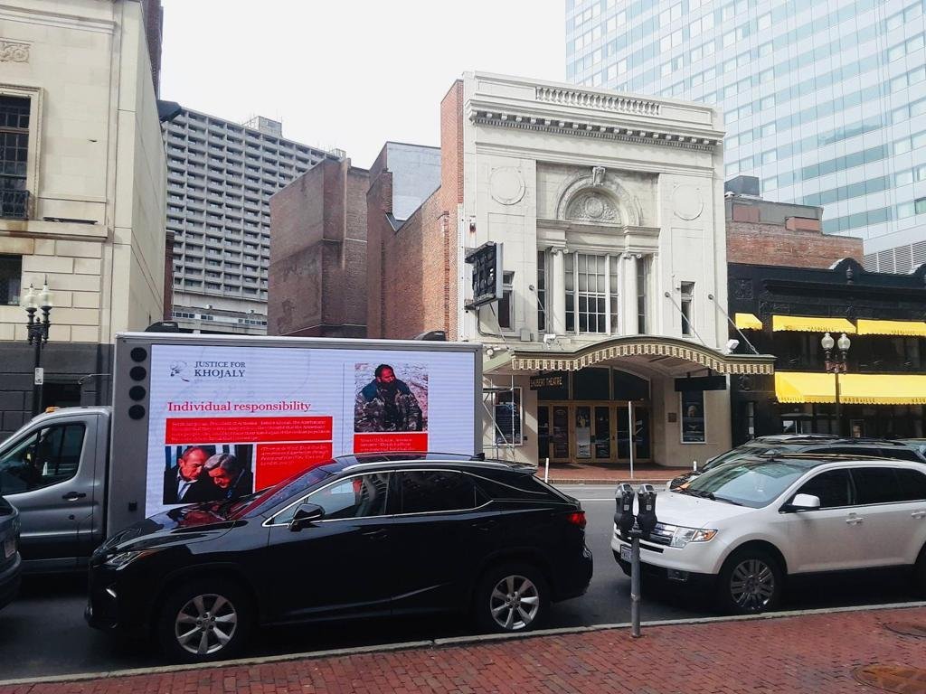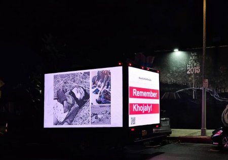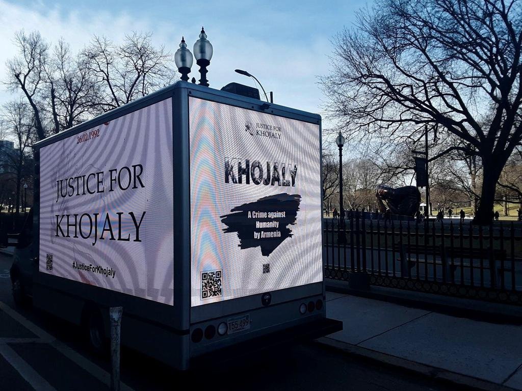 В ходе акции автомобили с LED экранами, отражающими ходжалинские реалии, передвигались по многолюдным центральным улицам городов.