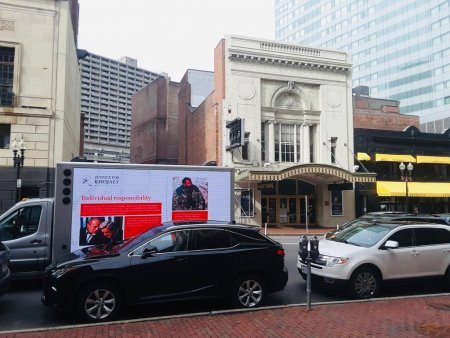 Aksiya zamanı Xocalı həqiqətlərini əks etdirən LED ekranlı avtomobillər şəhərlərin izdihamlı mərkəzi küçələrində hərəkət edib.