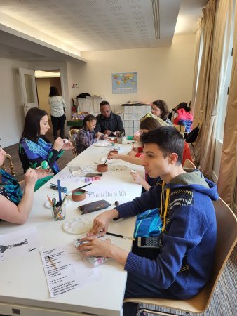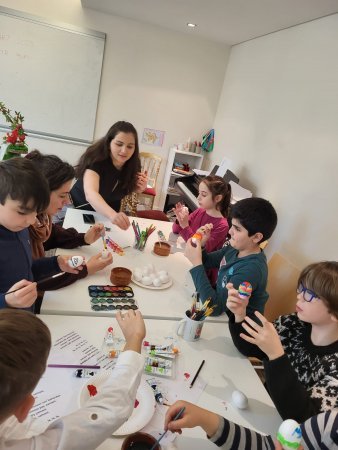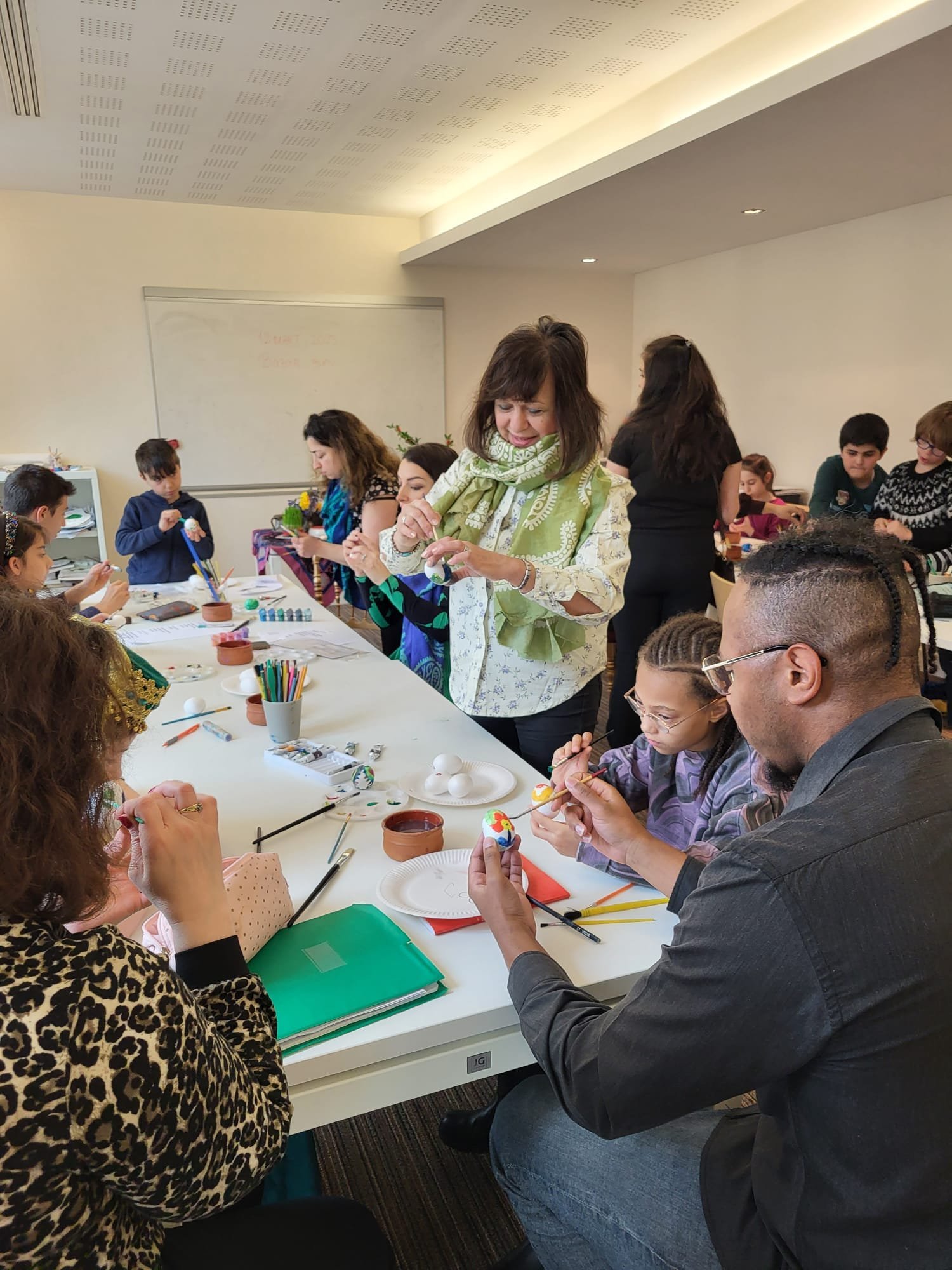 Bayram şənliyi yumurta boyanması ilə davam edib. Bu prosesi uşaqlara Azərbaycanın Fransadakı səfiri Leyla Abdullayeva, rəsm müəllimi Əsmər Nərimanbəyova, musiqi müəllimi Səidə Zülfüqarova və Azərbaycan dili müəllimi Kəmalə Gülməmmədova nümayiş etdiriblər.