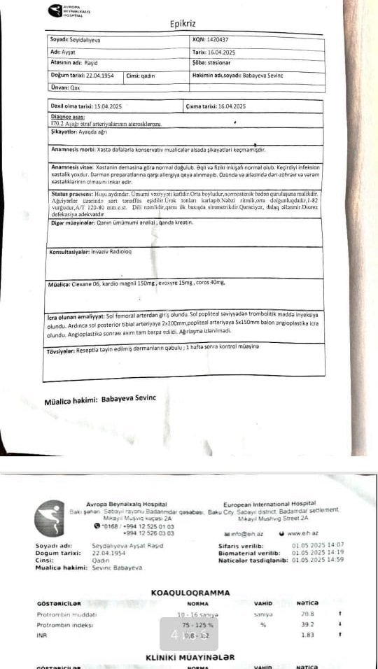 Növbəti ayaq damarlarındakı əməliyatı üçün 29.04.2025 tarixində yenə də saat 17:00-də xəstə Avropa Beynəlxalq Hospitalına çağırıldı.