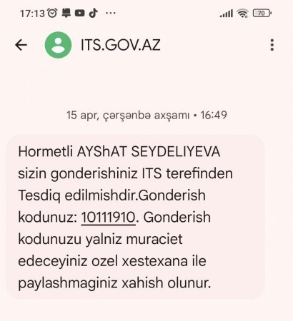 (Sevinc Babayevanın Seymur Musayeva pul ödənişi etdiyi bildirir)