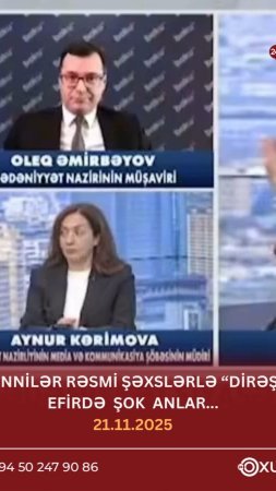 Verilişə evdən qoşulan digər Nazirlik rəsmisi Oleq Əmirbəyov isə müğənnilərin sərt ittihamlarına bir çox hallarda gülərək reaksiya verir...Efir zamanı Nazirliyi təmsil edən Aynur Kərimovanın terminləri səhv salması və çıxılmaz duruma düşməsi isə tam bir başqa zamanın mövzusudur...