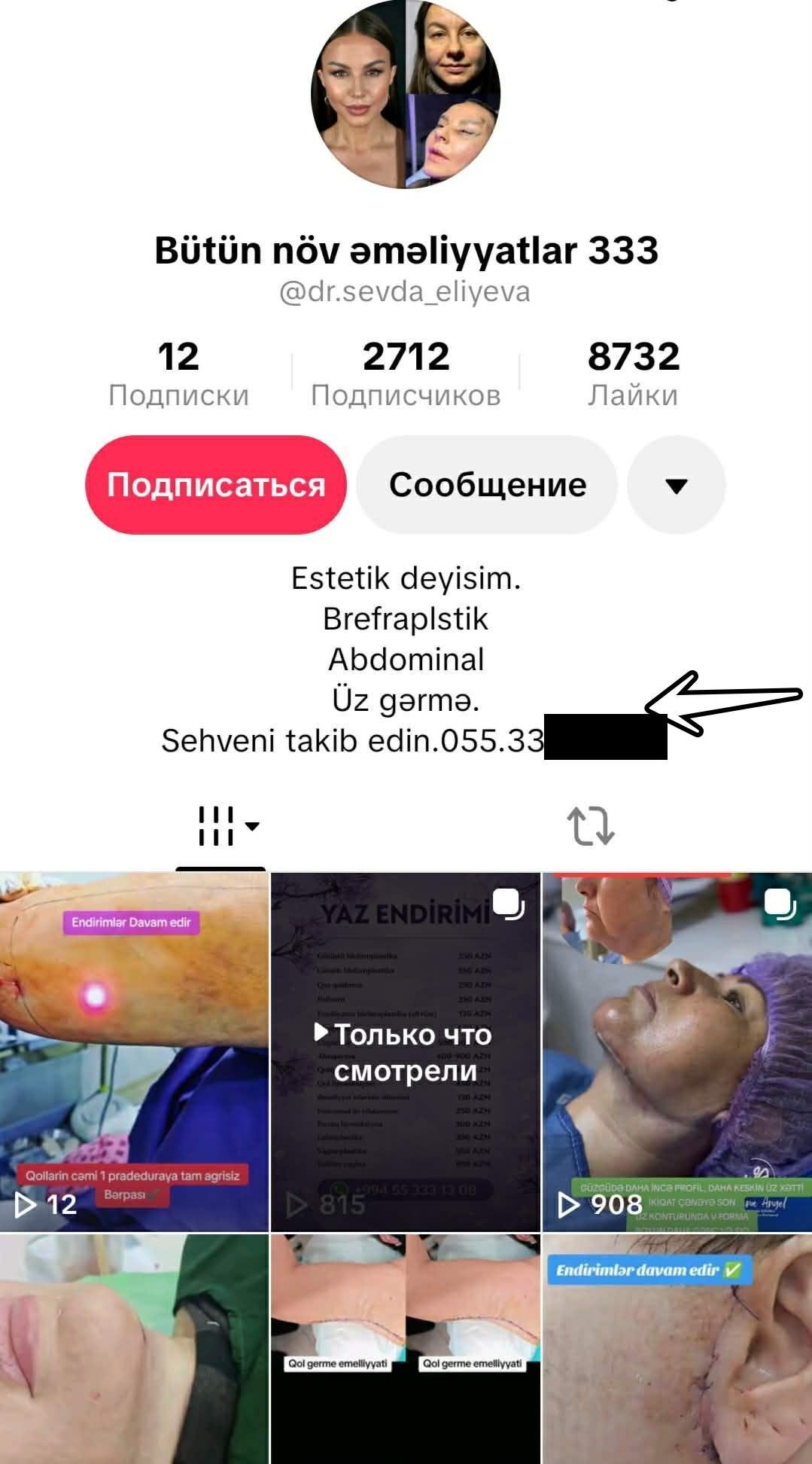 Həmçinin bildirir ki, iddialara görə saxta adla “Dr. Sevda Əliyeva”nın sosial hesabında əvvələr də “Dr Emma” nın Ellmina Həsənovanın mobil nömrəsi qeyd olunub.
