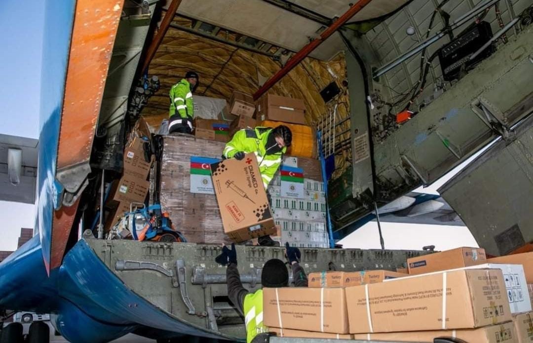 Heydər Əliyev Fondunun qardaş Türkiyədə zəlzələ qurbanlarına humanitar yardımını aparan xüsusi təyyarə Qaziantep hava limanına çatıb.Azərbaycanın birinci xanımı, Heydər Əliyev Fondunun prezidenti Mehriban Əliyevanın göstərişinə əsasən, faciədən zərər çəkmiş şəxslər üçün göndərilən 36 ton humanitar yardım-müxtəlif dərman preparatları, oksigen maskaları, filtrli sistemlər, sarğı materialları, onurğa taxtaları, ilkin yardım boyunluqları, xərək və digər tibbi ləvazimat və avadanlıqlar, isti geyimlər, çadırlar zərər çəkmiş vətəndaşlara çatdırılacaq.
