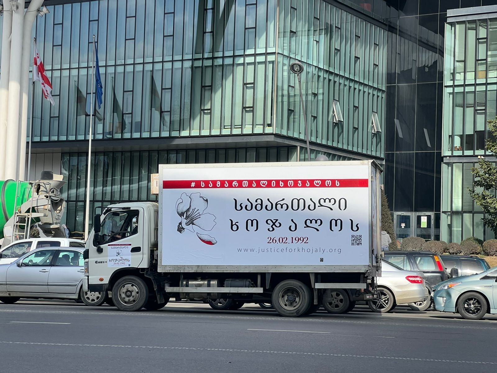 Akiya zamanı üzərində gürcü və ingilis dillərində “Xocalıya Ədalət!” tələbinin əks olunduğu 4 yük avtomobili paytaxtın mərkəzindəki Aleksandr Çavçavadze küçəsindən hərəkət etməyə başlayıb. Avtomobil karvanının şəhərin mərkəzindəki izdihamlı yerləri və əhalinin sıx yaşadığı əraziləri (Rustaveli prospekti, Azadlıq meydanı, Pekin, Merab Kostava, Marcanişvili, Sereteli küçələri və sair) əhatə edən marşrut üzrə hərəkət etməsi nəzərdə tutulub.