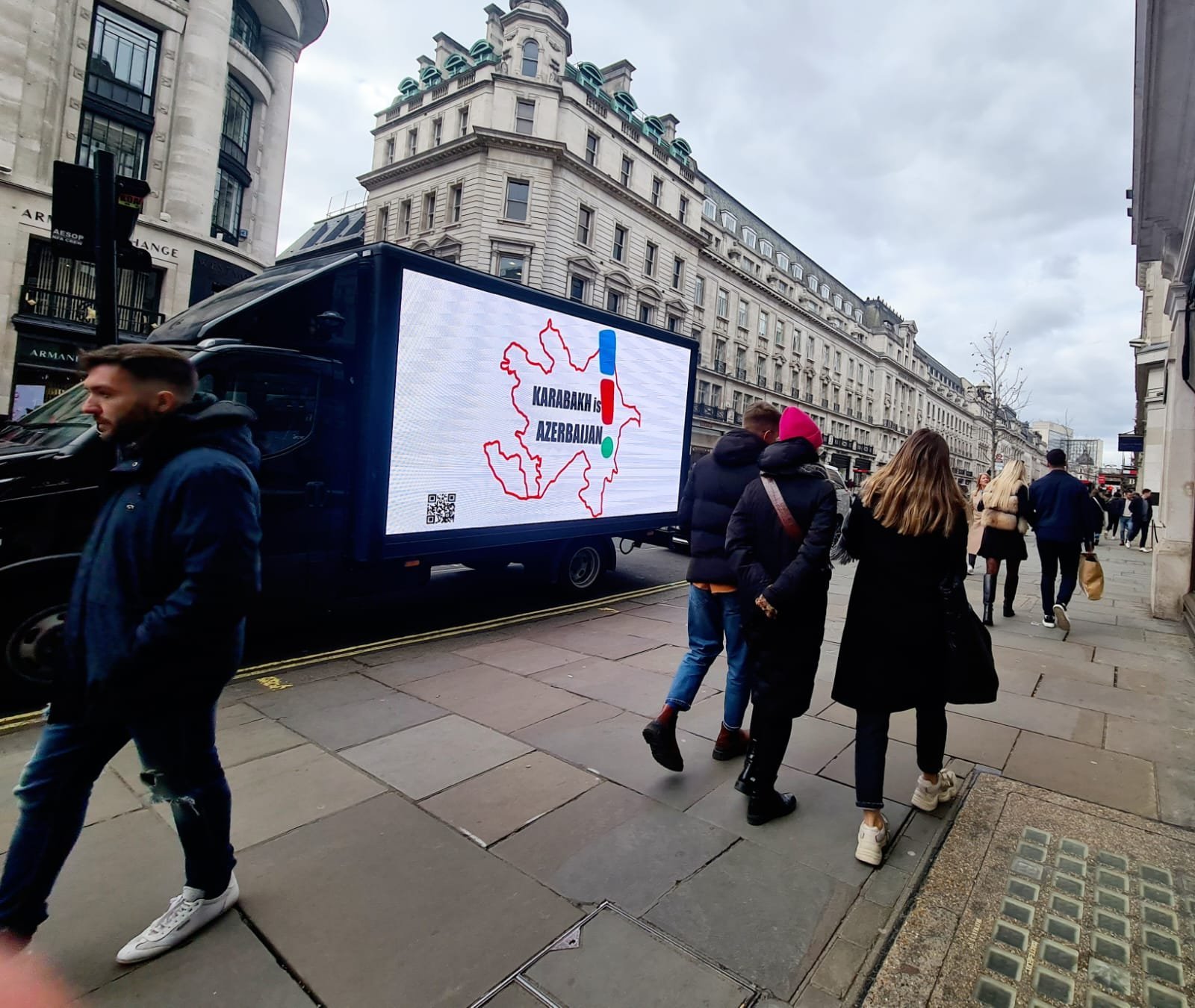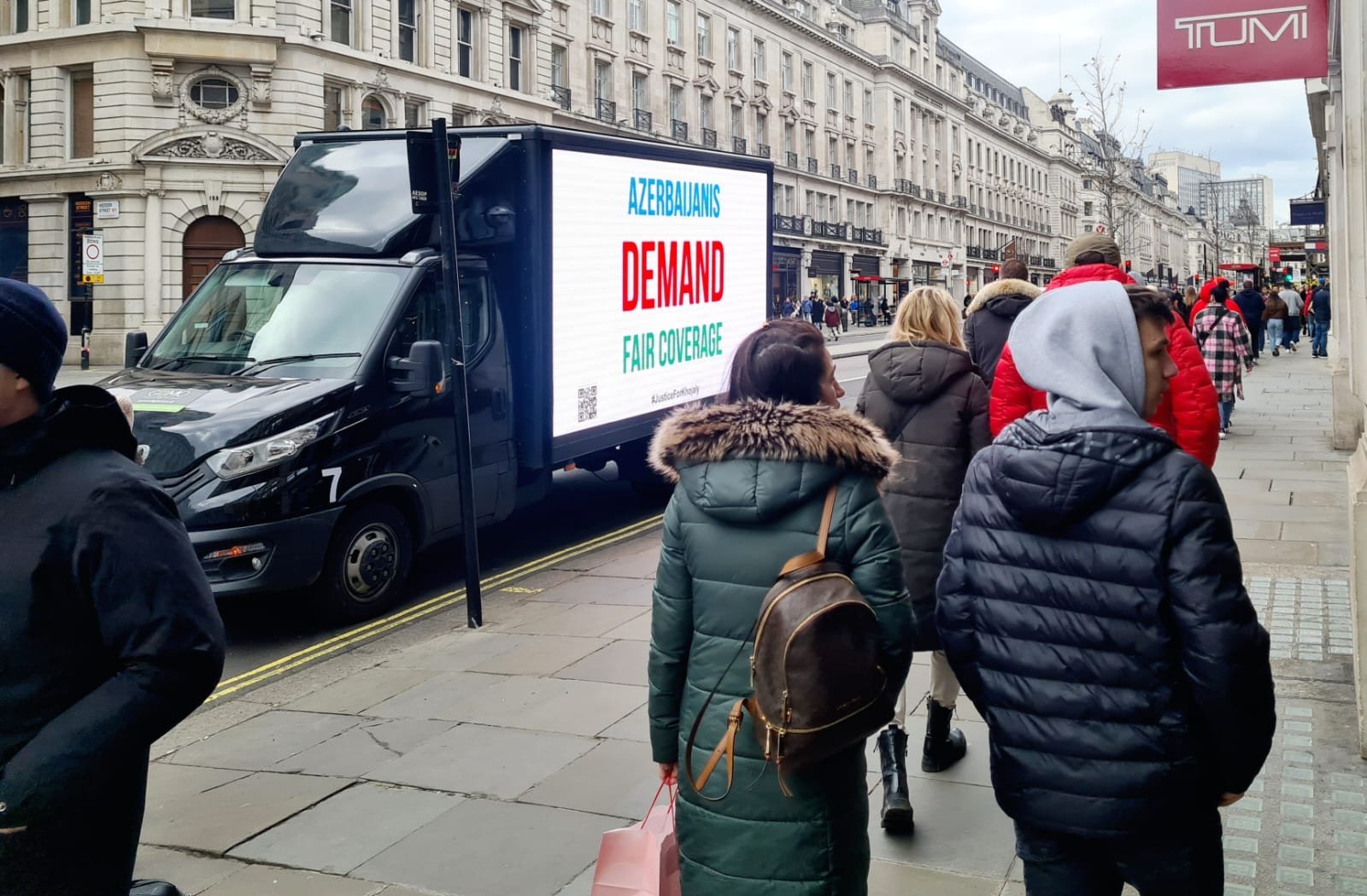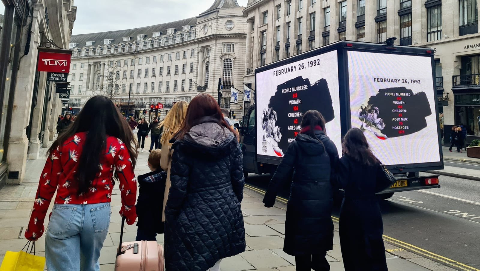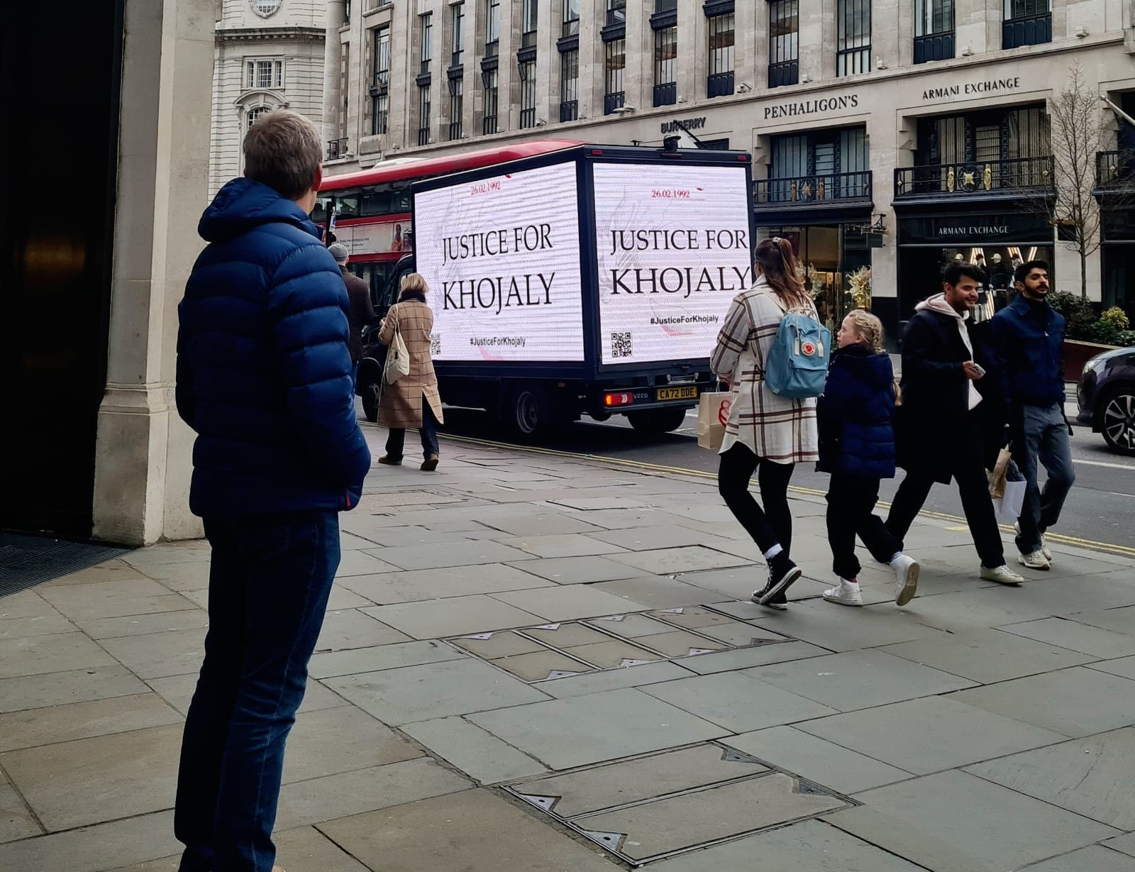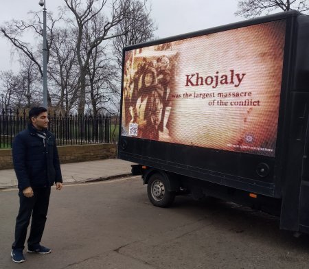 The vehicles with LED screens reflecting Khojaly truths moved through the