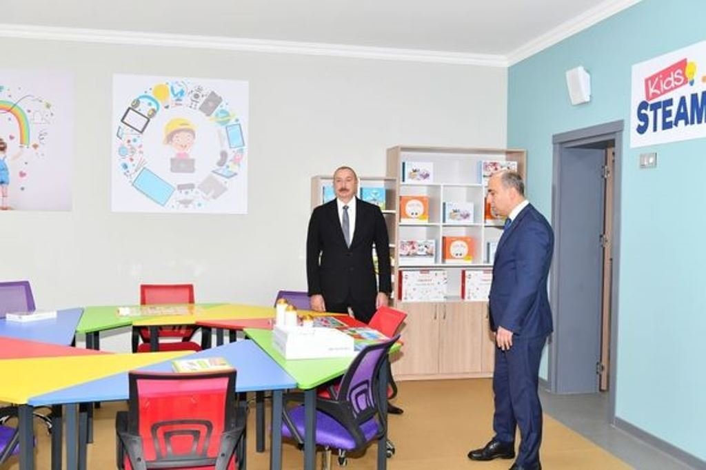 Prezident İlham Əliyev yeni təhsil ocağının məktəbəqədər hazırlıq, ibtidai sinif otaqlarında, biologiya kabinetində, çağırışa qədər hərbi hazırlıq otağında, STEAM Mərkəzində, fizika kabinetində, kimya laboratoriyasında, informatika otağında, idman zalında və yeməkxanada yaradılan şəraitlə tanış olub.