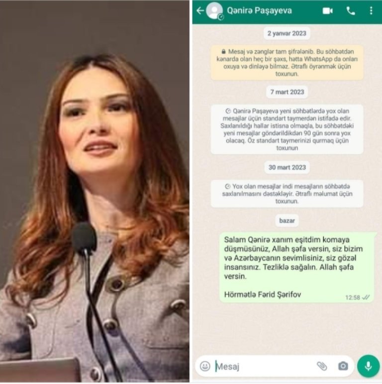 Birinci vitse prezident Mehriban xanım Əliyevanın könüllüsü Fərid Şərifovdan Qənirə Paşayeva ilə bağlı təsirli paylaşım.Çox acı və kədərli xəbər aldım. Bazar günü sevimli Qənirə xanıma vpda yazmışdım.... Amma bu gün rəsmi olaraq onu sevənlər hamımız onun ölüm xəbərini aldıq.... Ölüm xəbəri mənə həqiqətən çox pis təsir etdi və çox sarsıldım buna görə... Allah rəhmət etsin Vətənpərvər vətən qızı Qənirə xanım.... Sizə ölüm yaraşmırdı əziz insan... Sizlə olan görüşlərimiz də məni hər görəndə diqqət qayğı dəstək göstərirdiz, xatirimdədi siz mənə demişdiz biz hamımız səni dövlətini sevən fəal aktiv Azərbaycan gənci kimi tanıyırıq sən çox istedadlı Prespektivli gəncsən demişdiz mənə.... Həqiqətən sizin ölüm xəbərinizi paylaşmaq mənim üçün çox təsirlidi... Siz hər zaman mənim üçün sevimli və əziz olaraq qalacaqsınız Qənirə Paşayeva ❤️❤️