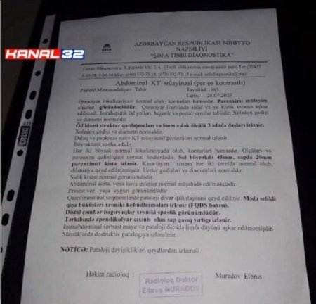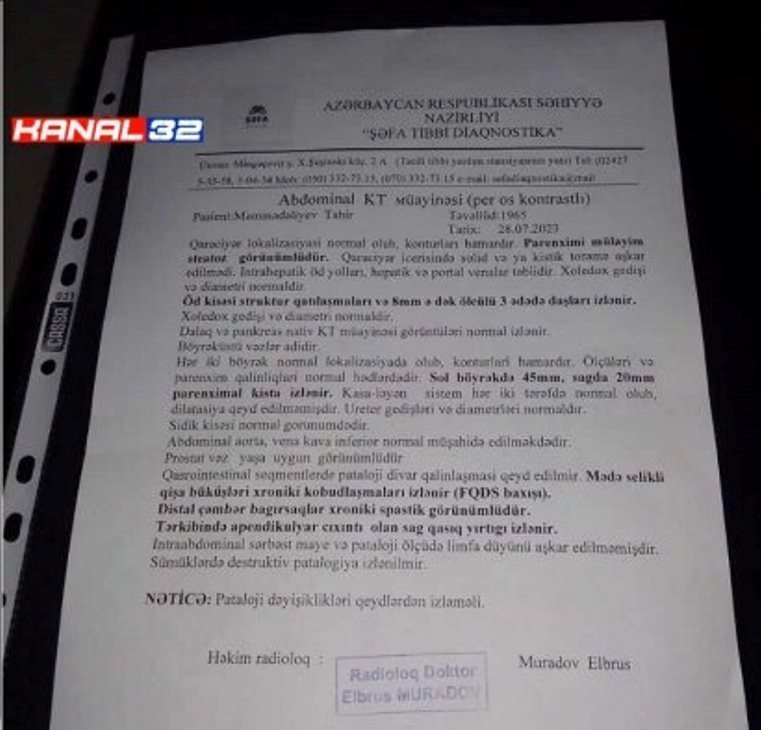 Xəstəmizi əməliyyat edən və ölümündə birbaşa günahı olan Mingəçevir Şəhər Mərkəzi Xəstəxanasının həkim-cərrahı Məhəmməd Quliyevin cinayət məsuliyyətinə cəlb olunaraq cəzalandırılmasını, onun həkimlikdən uzaqlaşdırılmasını və “Məlhəm” klinikasında müayinə və müalicələrin nə dərəcədə doğru olduğunun araşdırılmasını tələb edirik. Baş prokurorluq, İcbari Tibbi Sığorta üzrə Dövlət Agentliyi və TƏBİB-dən ədalətli və real addımlar gözləyirik. Kanal32.az mərhumun oğlu Nadir Məmmədəliyevin Baş prokurorluğa və TƏBİB-ə etdiyi videomüraciəti təqdim edirk:
