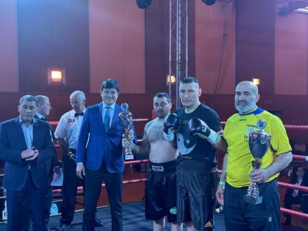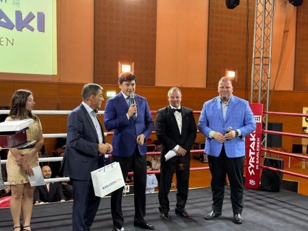 Komitə sədri gərgin mübarizə şəraitində keçən döyüşdə Nikoloz Berkataşviliyə qalib gələn soydaşımız Rəşad Kərimova kuboku təqdim edib.
