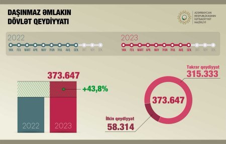 Onun sözlərinə görə, bunun 58 314-ü ilkin, 315 333-ü isə təkrar qeydiyyatın payına düşür. Ötən ilin eyni dövrü ilə müqayisədə 43,8% artım müşahidə olunub.