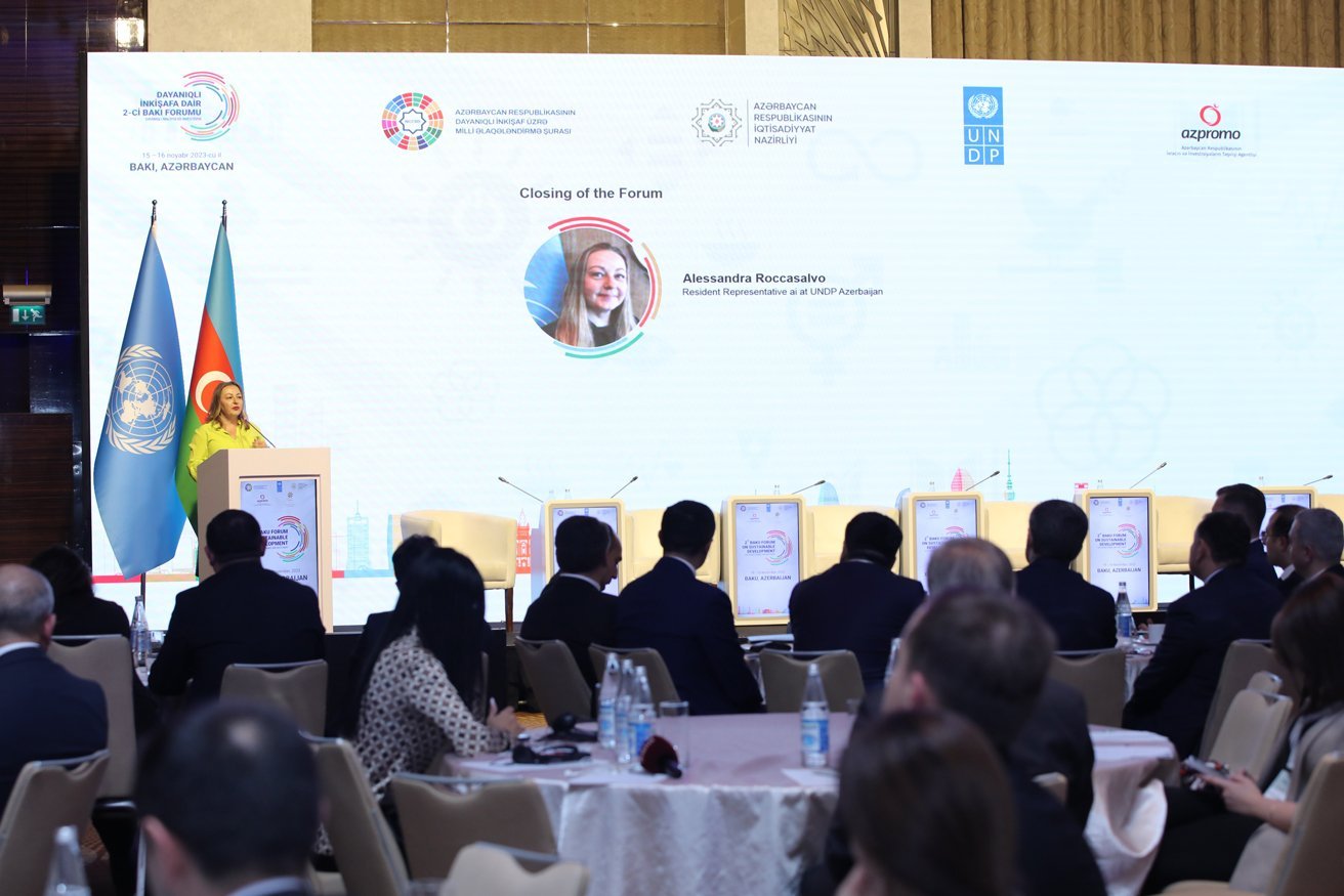 BMT İnkişaf Proqramının Azərbaycan üzrə rezidenti vəzifəsinin icraçısı Alessandra Rokkasalvo Forumun təşkilinə görə təşəkkürünü ifadə edib, təmsil etdiyi qurumun 18-ci DİM-in icrasında Azərbaycan hökumətinə dəstəyini davam etdirəcəyini, azad edilmiş ərazilərimizin minalardan təmizlənməsində birgə fəaliyyət göstərəciyini bildirib. Forumun yekunu olaraq Bakı Bəyannaməsi qəbul olunub. Bəyannamədə DİM-ə sərmayələrin cəlb edilməsi, investisiya ekosisteminin təşviqi məqsədilə regional əməkdaşlığın yaradılması, buna dair koordinasiya mexanizminin icrasına dövlət qurumları, akademik dairələr və