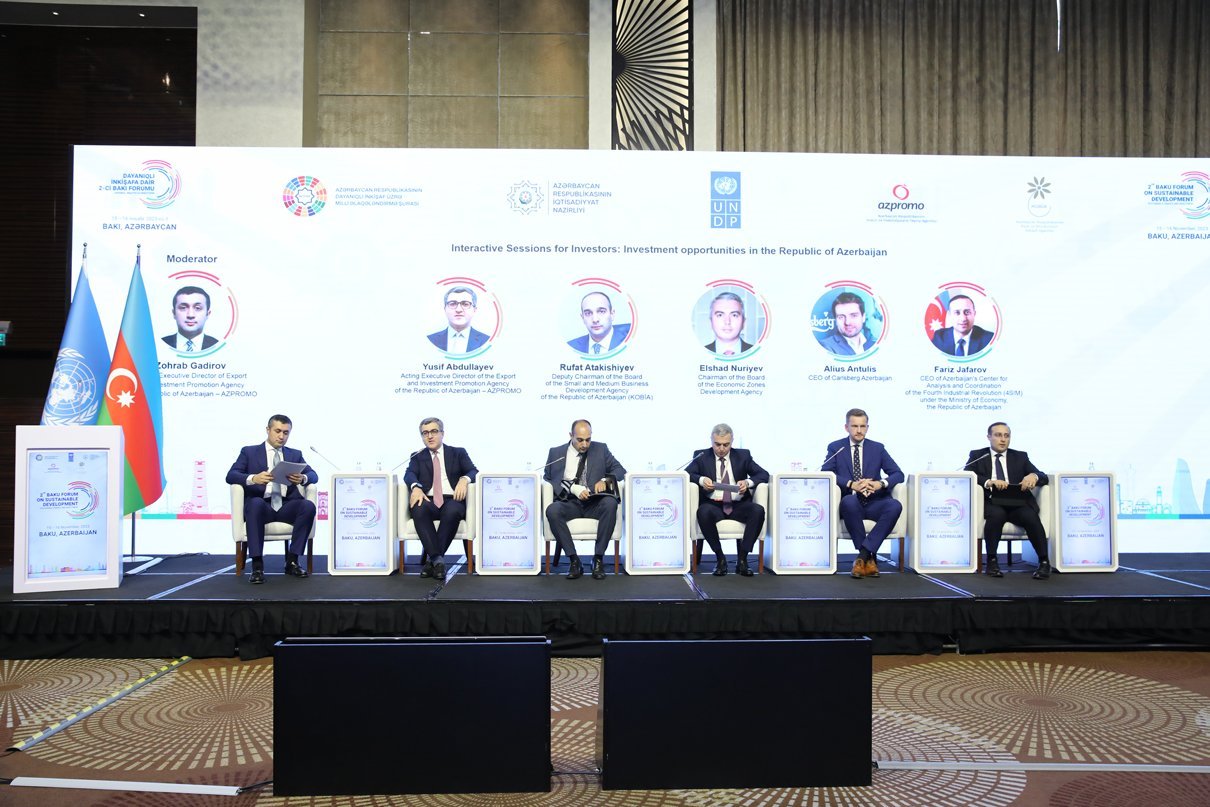 Forum çərçivəsində “Biomüxtəliflik investisiyaları çərçivəsi: gündəlikdən fəaliyyətə” mövzusunda sessiyada biomüxtəlifliyə sərmayə qoyuluşu, təbiətə əsaslanan həllər, dünyada bu sahədə mövcud təcrübələr barədə məlumat verilib, təbii yaşayış mühitlərinin qorunması və bərpası üçün davamlı maliyyə ayrılmasının, eləcə də davamlı təcrübələrin təşviqinin önəmi qeyd olunub. “İnvestorlar üçün interaktiv sessiyalar: Azərbaycan Respublikasında investisiya imkanları” mövzusunda sessiyada isə ölkəmizdə xarici investisiyaların cəlbi istiqamətində həyata keçirilən tədbirlər, sərmayədarlar üçün yaradılmış əlverişli investisiya mühiti barədə məlumat verilib.