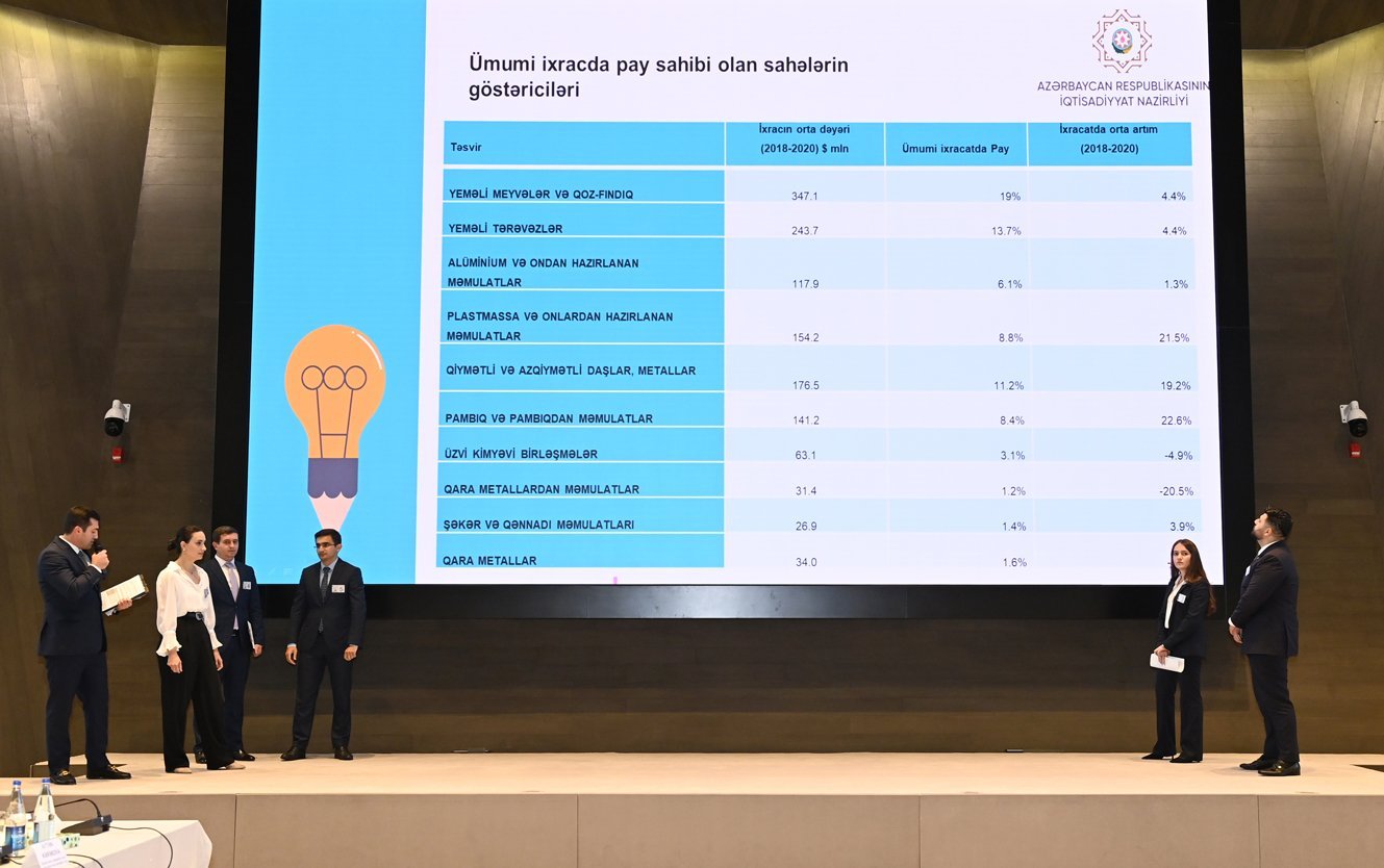 Sonra finalçılar “Azərbaycan Respublikasının 2022‒2026-cı illərdə sosial-iqtisadi inkişaf Strategiyası” üzrə müxtəlif mövzularda təqdimatlarla çıxış ediblər. Təqdimatlar rəhbər şəxslər tərəfindən dinlənilib və qiymətləndirilib.