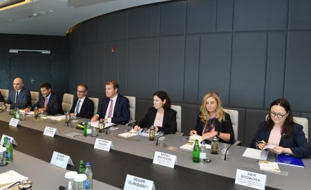 İqtisadiyyat naziri Mikayıl Cabbarovun Avropa Yenidənqurma və İnkişaf Bankının birinci vitse-prezidenti Yurgen Rigterink ilə görüşündə Bankla əlaqələrin mövcud vəziyyəti, həyata keçirilən birgə layihələr və əməkdaşlığın genişləndirilməsi imkanları barədə fikir mübadiləsi aparılıb.İqtisadiyyat naziri Mikayıl Cabbarov AYİB-in birinci vitse-prezidenti Yurgen Rigterink ilə görüşüb. Görüşdə Azərbaycanın AYİB-lə müxtəlif istiqamətlər üzrə uğurlu əlaqələri vurğulanıb, ölkəmizin sosial-iqtisadi prioritetləri barədə məlumat verilib. Qeyd olunub ki, qarşıya qoyulmuş inkişaf hədəflərinin reallaşdırılması istiqamətində əməkdaşlıq imkanları genişdir. Bu kontekstdə Bankla “yaşıl” iqtisadiyyat, enerji, xüsusilə bərpa olunan və alternativ enerji, özəl sektorun inkişafı, infrastruktur və digər istiqamətlər üzrə prioritet layihələrin icrası məqsədilə atılacaq addımlar müzakirə edilib. AYİB-in birinci vitse-prezidenti Yurgen Rigterink Bankın ölkəmizlə səmərəli əməkdaşlığını qeyd edib, Azərbaycanın iqtisadi potensialının əlaqələrin genişlənməsinə əlverişli zəmin yaratdığını və qurumun Azərbaycan iqtisadiyyatının inkişafını dəstəkləməyə davam etmək niyyətini ifadə edib. Tərəflər Azərbaycan-AYİB əlaqələrinin mövcud vəziyyəti, həyata keçirilən birgə layihələr və əməkdaşlığın genişləndirilməsi imkanları barədə fikir mübadiləsi aparıblar.