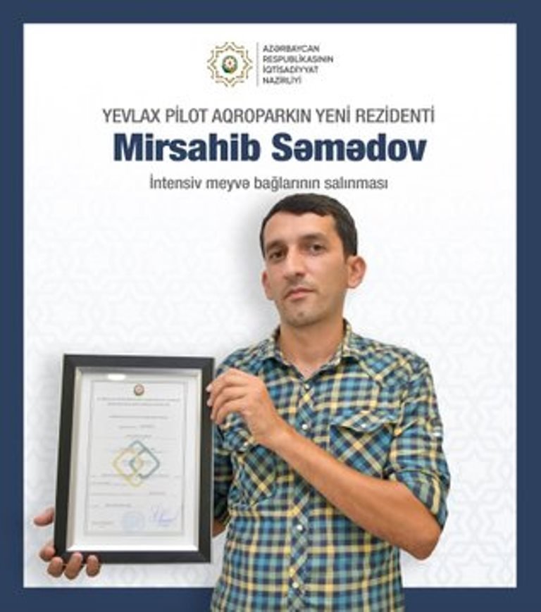 “Rezidentlər 35,4 hektar sahədə investiya dəyəri 301,3 min manat olan intensiv meyvə bağları salacaq, 8 nəfəri daimi, 30 nəfəri isə mövsümi işlə təmin edəcəklər”, - deyə o qeyd edib.