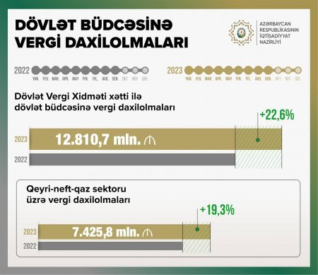 O bildirib ki, bu müddətdə qeyri-neft-qaz sektorundan vergi daxilolmaları ötən ilin eyni dövrü ilə müqayisədə 19,3% artaraq 7 milyard 425,8 milyon manat olub. Vergi daxilolmalarında müsbət dinamikanı saxlamaq üçün biznes mühitinin şəffaflaşması və vergi inzibatçılığının təkmilləşdirilməsi sahəsində fəaliyyətimiz davamlı olacaq.