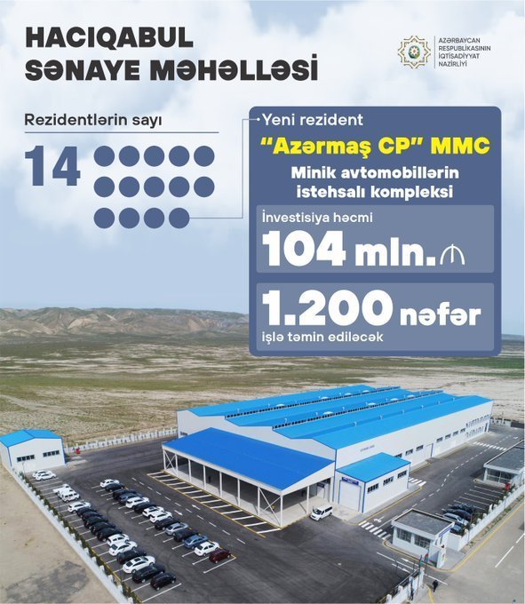 O bildirib ki, şirkət tərəfindən Sənaye Məhəlləsinin ərazisində investisiya həcmi 104 milyon manat olan minik avtomobillərin istehsalı kompleksi yaradılacaq və 1 200 nəfər işlə təmin ediləcək.