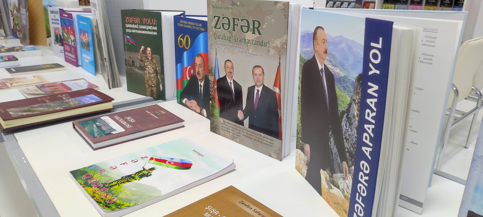 Burada “Qələmlə, silahla…”, “Zəfər yolu”, “Şuşa zirvədən uca”, “İlham Əliyev və Zəfər tariximizin şanlı səhifələri”, “Şuşa Bəyannaməsi birlik və həmrəylik fəlsəfəsi”, “Qəhrəmanlıq tariximizin şanlı səhifələri”, “Zəfər memuarları. Döyüşçülər, sərkərdə və müharibə haqqında”, “Vətən müharibəsinin 44 günlük Zəfər səlnaməsi”, “Yeni Qarabağnamə”, “Zəfərlər yolu”, “Zəfər yolu: Qarabağ savaşından Şuşa Bəyannaməsinədək”, “Şuşa Azərbaycanın mədəniyyət paytaxtı” biblioqrafiya, “Şuşa və şuşalılar”, “Şuşadan şəhidlər xiyabanına”, “Qarabağın və Şərqi Zəngəzurun Alban abidələri”, “Zəfərnamə”, “Zəfər qoxusu”, “Zəfər. Qarabağ Azərbaycandır! 44 günlük Qarabağ müharibəsi- Azərbaycanın hərbi və diplomatik uğurları”, “Zəfərə aparan illər” və şanlı zəfər tarixi mövzusunda dərc edilən digər nəşrlər sərgilənir.