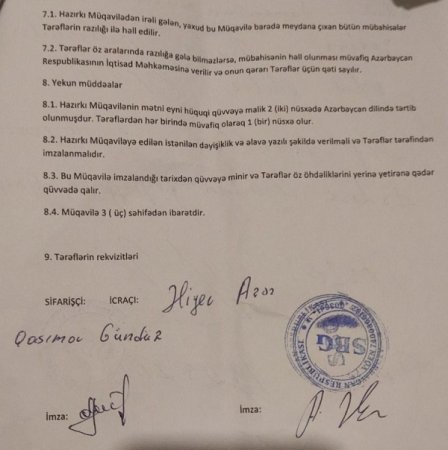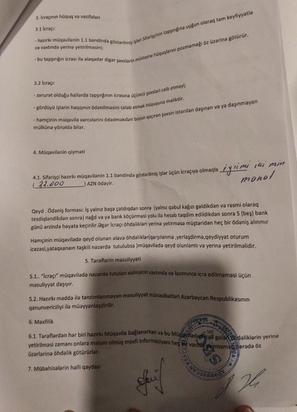 “Maraqlısı budur ki, mənim onunla müqaviləm, pul ödədəyim haqqında sübutlarım olduğu halda müstəntiq məni zərərçəkən kimi tanımayıb. Məhkəmə iddiasına da adımı daxil etməyiblər. Halbuki Anar məndən müqavilə ilə 22 min, əlbəəl 10 min ( cəmi 32 min) pul alıb. Dəfələrlə bu barədə danışmışıq, pulu qaytarmayacağını deyir.