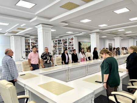 27 Sentyabr - Anım Günü saat 12:00-da ölkənin hər yerində olduğu kimi, MEK-də də şəhidlərin əziz xatirəsi rəhbərlik başda olmaqla, əməkdaşlar, oxucular, qonaqlar tərəfindən bir dəqiqəlik sükutla yad edilib.