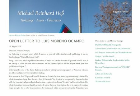 Qafqaz regionunun tarixi üzrə mütəxəssis, Dr. Mixael Hess Moreno Ocampoya açıq məktubunda onun rəyini “faktların təhrifi”, “açıq-aşkar birətərfli ermənipərəst şərh və propaqanda“ kimi dəyərləndirib
