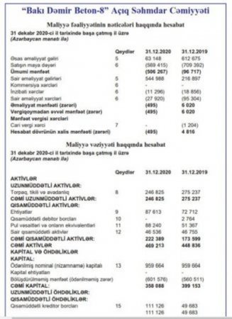 Elə bundan sonra ləğv prossesində olan, qeyri-qənaətbəxş və zərərlə fəaliyyət göstərildiyi deyilən "Bakı Dəmir Beton-8" ASC-nin ləğvindən imtina edilib.