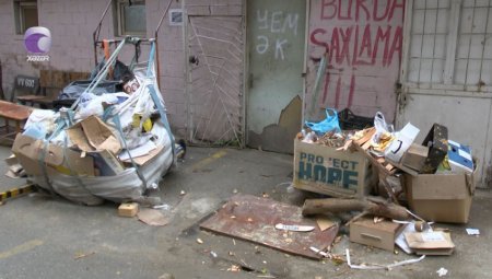 Xətai rayonunda ətrafa səpələnmiş zibillik-Video
