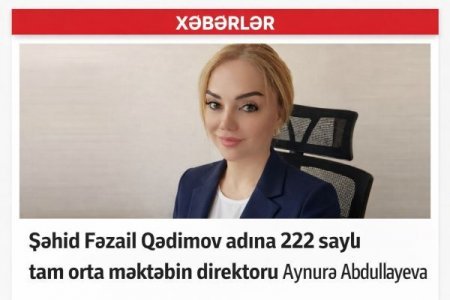 Şəhid Fəzail Qədimov adına 222 saylı məktəbin direktoru Aynurə Abdullayeva: Təhsildə vətənpərvərlik və mənəvi dəyərlərin qoruyucusu